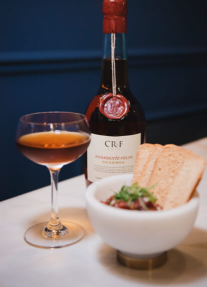 Para o consumo das Aguardentes mais velhas: CR&F Reserva Extra e CR&F 125 anos, um copo Tulipa, para que haja uma maior concentração de aromas e que os mesmos possam ser libertos de forma mais gradual, para que possa saborear, ainda mais, o momento.